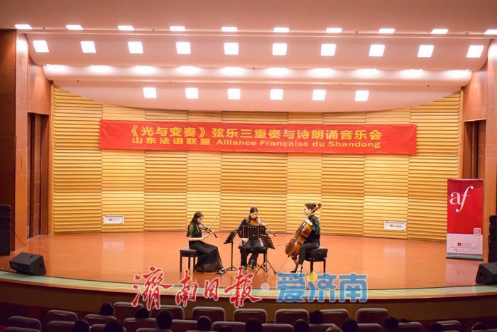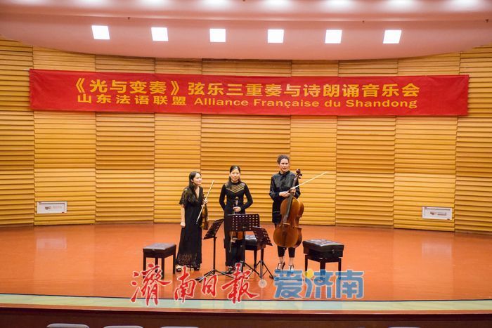 3月12日晚,由法国驻华大使馆引进、山东法语定约与山东艺术学院连合经办的《光与变奏》弦乐三重奏与诗朗读音乐会在山东艺术学院(文东校区)艺术戏院音乐厅圆满举行。两百余名泉城市民走进戏院,在弦乐与诗声的交汇中,感受了一场卓绝讲话的设施艺术之旅。