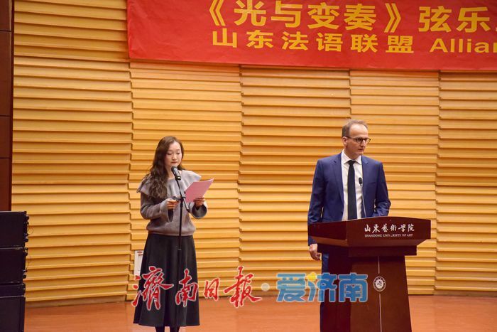 随后,山东艺术学院副院长韩文涛上台致辞,向山东法语定约及本次献艺的乐团——Les Illuminations(灵光乐团)的艺术家们致以浓烈接待。他追溯了山东艺术学院与法国在学术磋议、交换生景观、艺术展览等方面的深化疏导,强调艺术永久是中法文化对话的抨击桥梁。韩文涛指出,这次“光与变奏”音乐会和会法语诗歌与古典音乐,活泼展现了两国文化的立异共识。